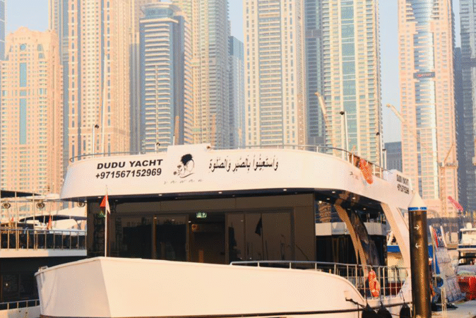 Step aboard a stunning luxury yacht and explore Dubai Marina Harbour with Tour With Rawan. For just 80 AED, enjoy a 90-minute sunset or night cruise complete with open international buffet dinner and live onboard entertainment.